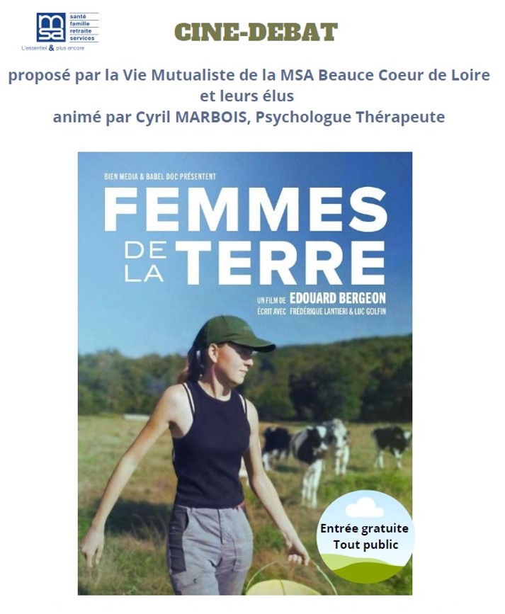 Diffusion du film les "Femmes de la Terre" traitant des parcours, des combats et de la résilience de celles qui vivent et travaillent au cœur de nos campagnes. Suivi par un débat animé par un psychologue. Entrée gratuite.
