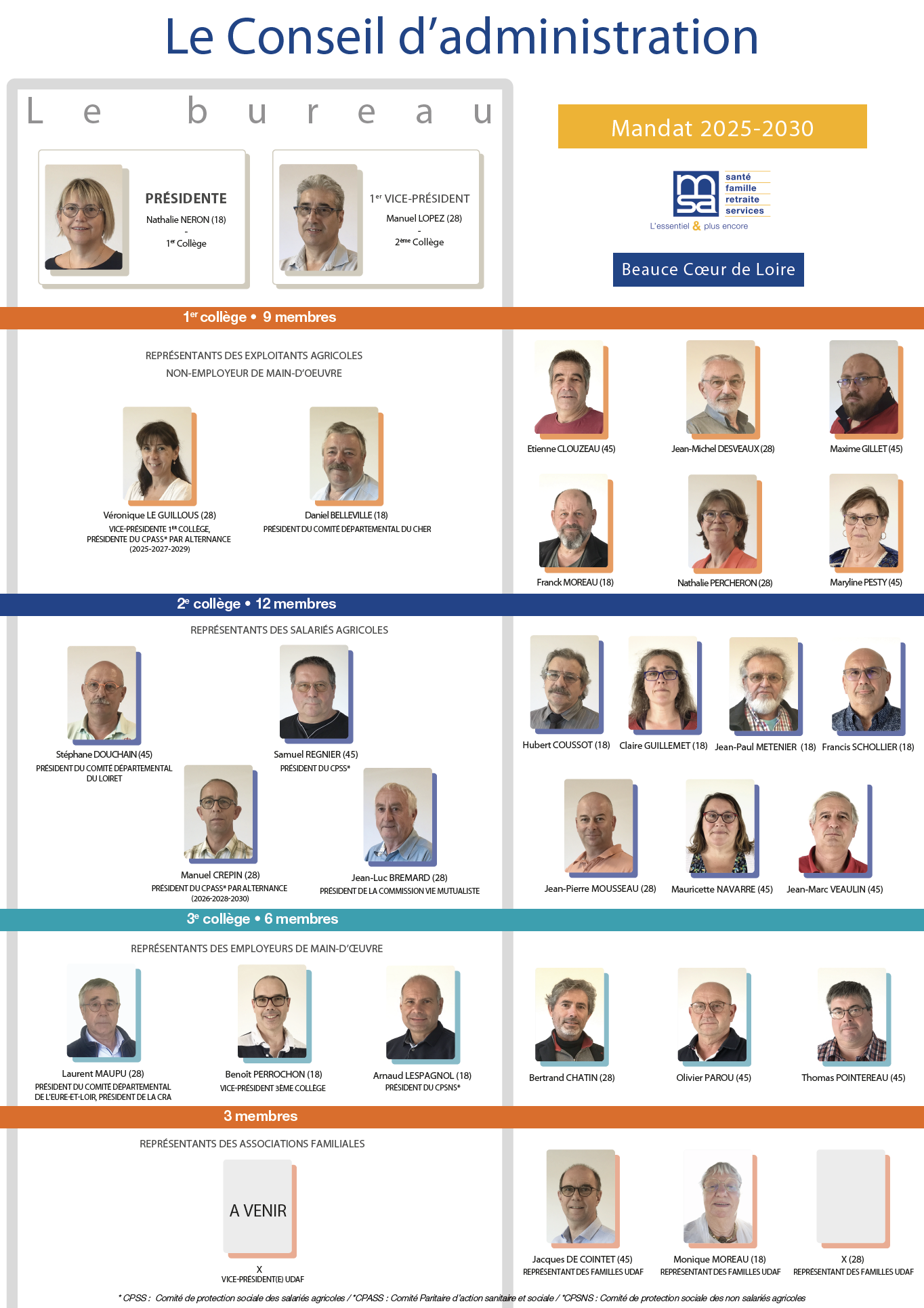 Voir la composition du Conseil d'Administration de la MSA Beauce Coeur de Loire